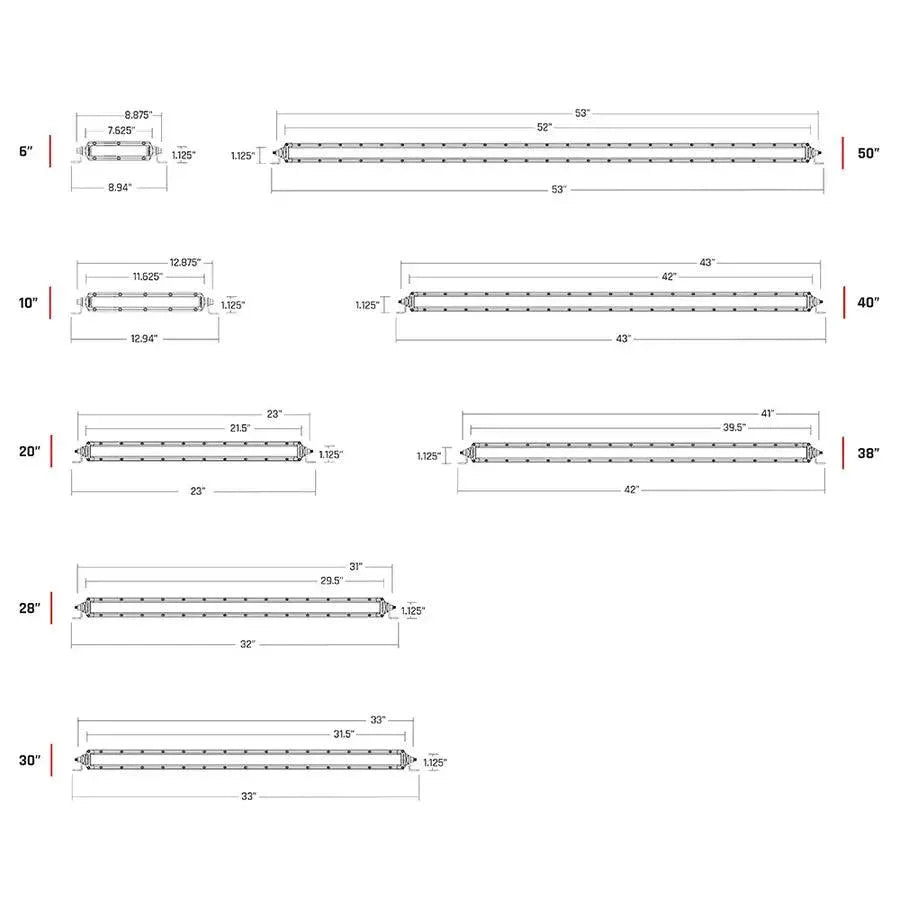 The SR-Series PRO LED Light Bars provide a sleek, low profile lighting solution that measures less than 2" tall. Thanks to improved LED technology, the SR-Series PRO now offers more light output than ever before with up to 111% more raw lumens. As the name implies, the SR-Series PRO utilizes a single row of LEDs with your choice of Hybrid or patented Specter optics in a variety of beam patterns. Ideal for applications where space is limited, the SR-Series PRO is a powerful light source designed to project light at extreme distances while consuming very little power. Available in a wide range of lengths and configurations, these LED light bars can be used on virtually any application, whether it's an off-road vehicle, industrial, agricultural, or marine.
